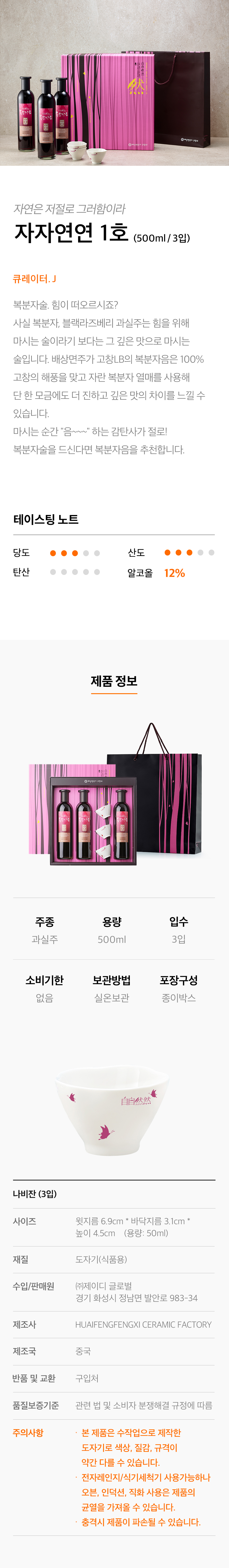 배상면주가 자자연연1호 복분자음 500ml 3병 고창 복분자 술 선물세트