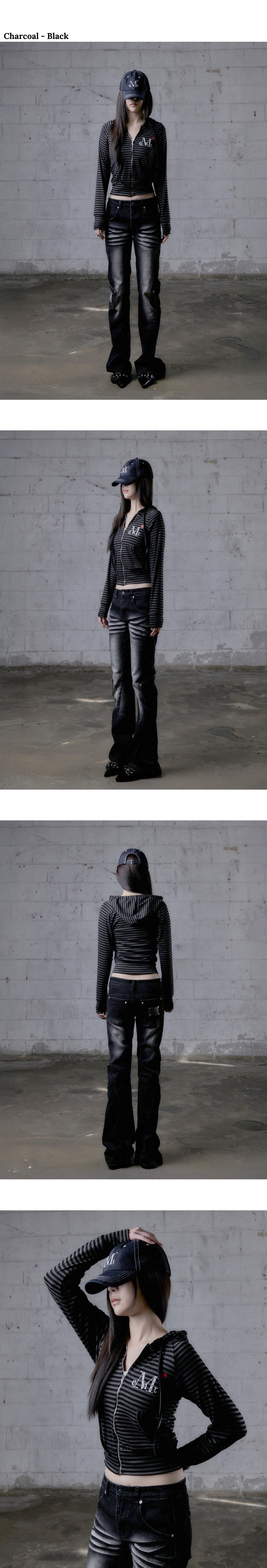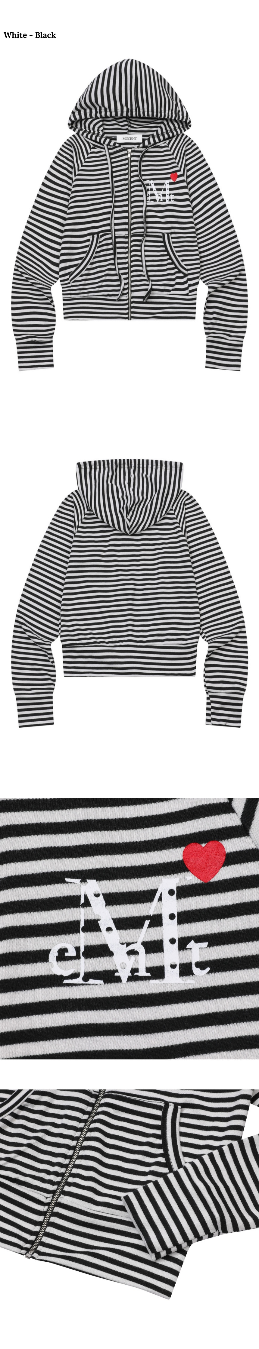 무센트 러브릿츠 미니 하트 로고 스트라이프 나그랑 후드 집업 (2컬러) 차콜 - 블랙