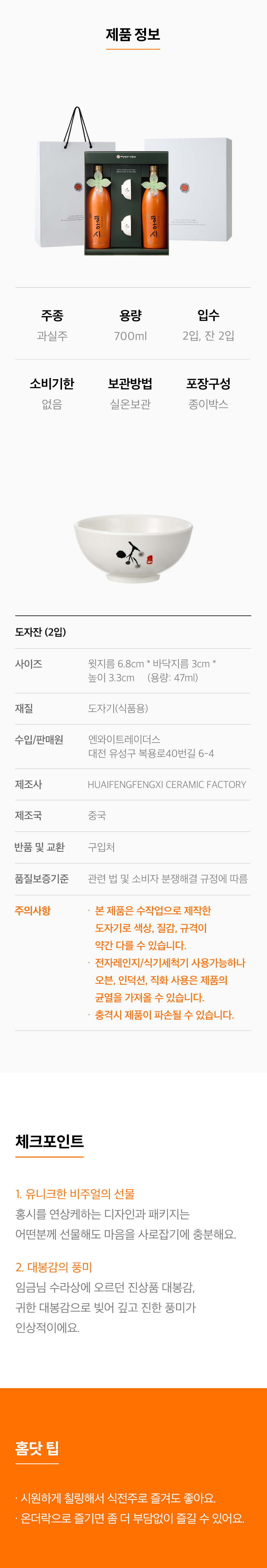 배상면주가 홍시과실주 선물세트 700ml 2입 전용잔 2입 술 선물세트