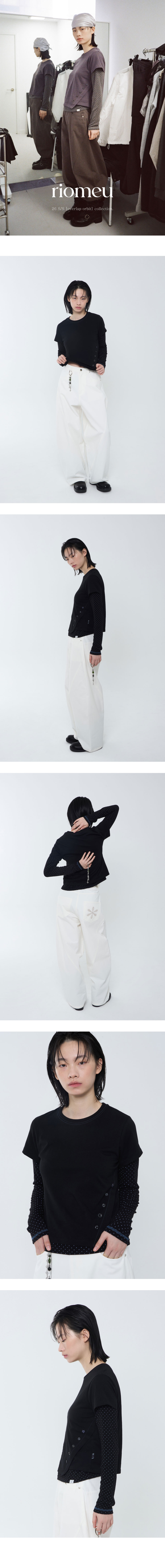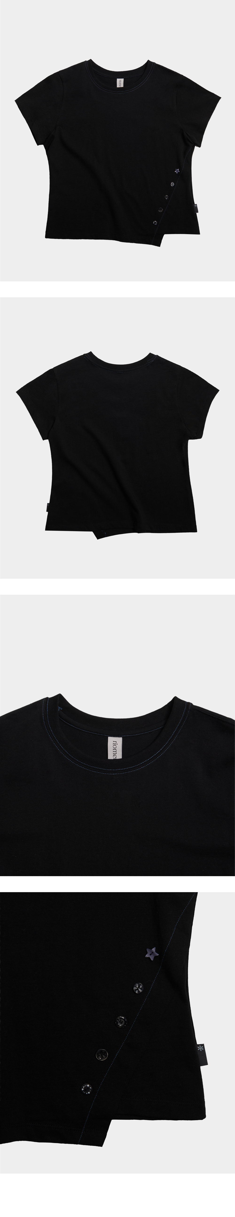 리오므 버튼 언발란스 반팔 티셔츠 블랙