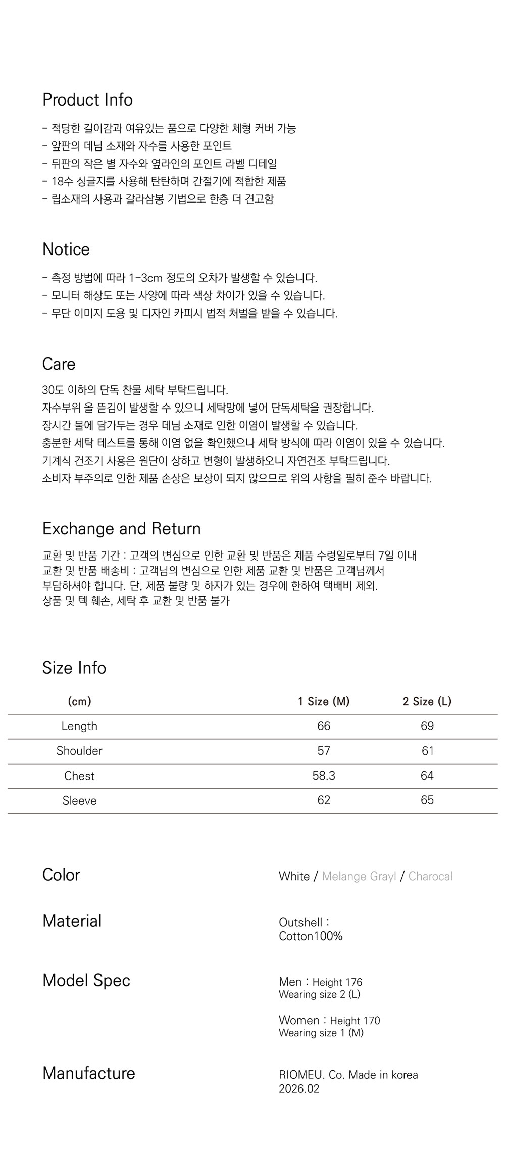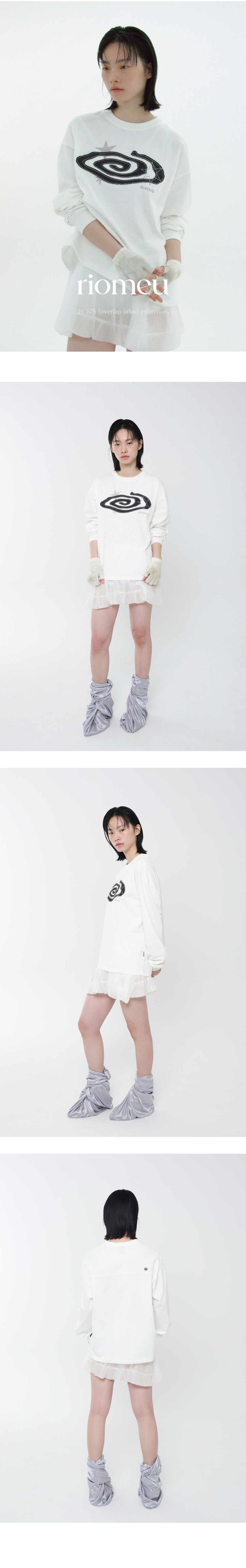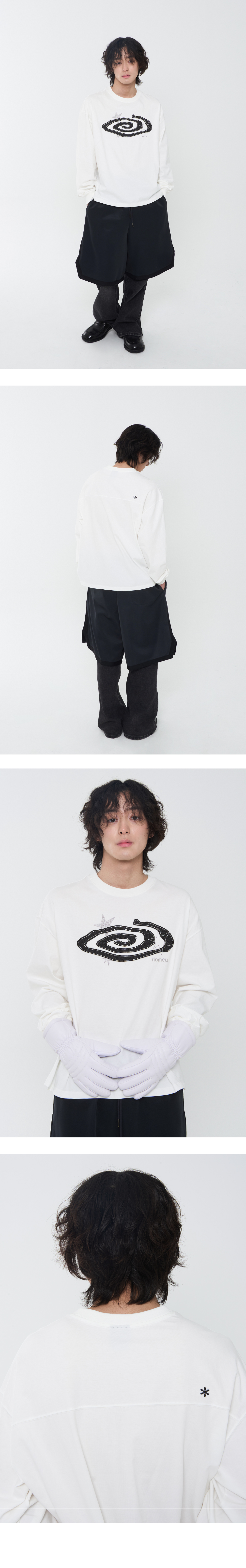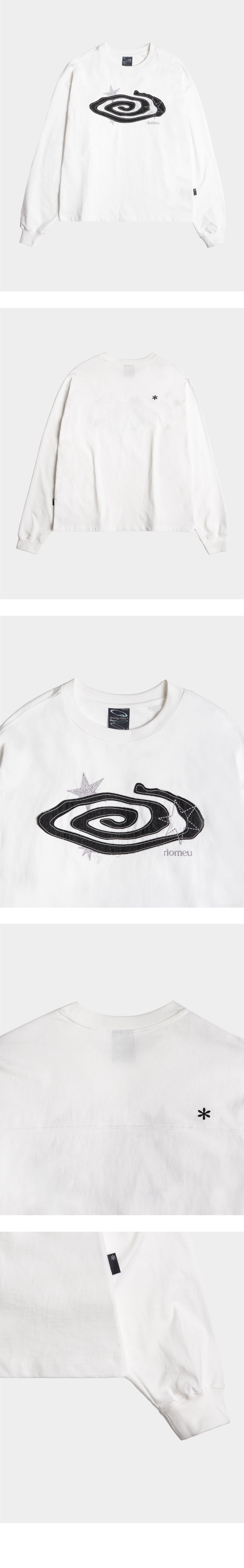 리오므 데님 아플리케 롱슬리브 티 화이트
