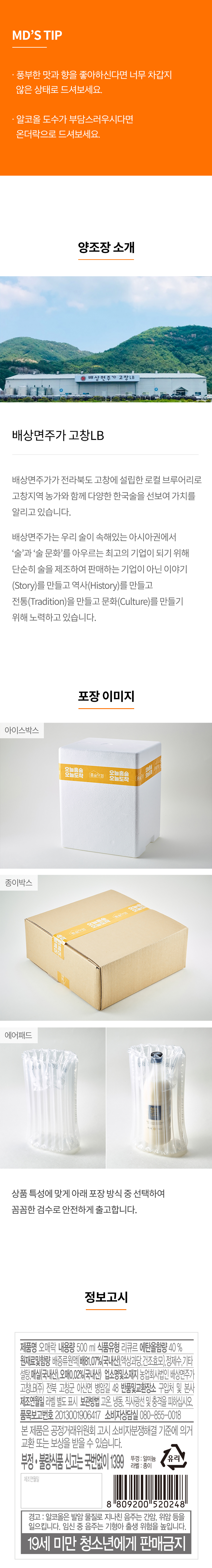 배상면주가 오매락40 선물세트 조선 브랜디 하이볼 500ml