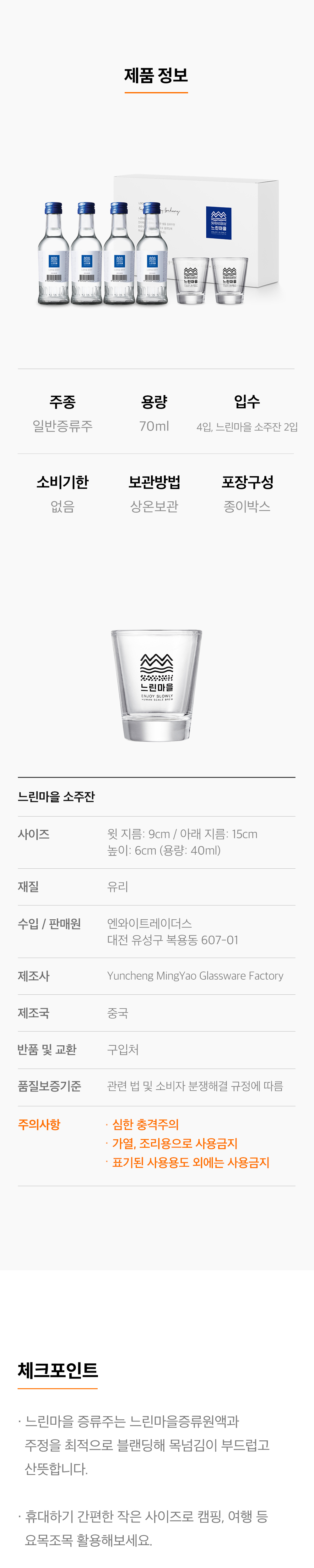 느린마을 느린마을증류주 미니세트 80ml 4입, 잔 2입