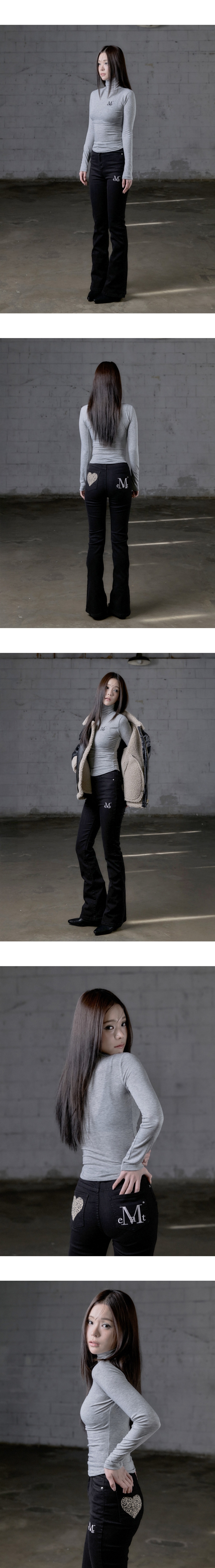 무센트 코론 백 레더 호피 하트 패치 부츠컷 코튼 팬츠 블랙