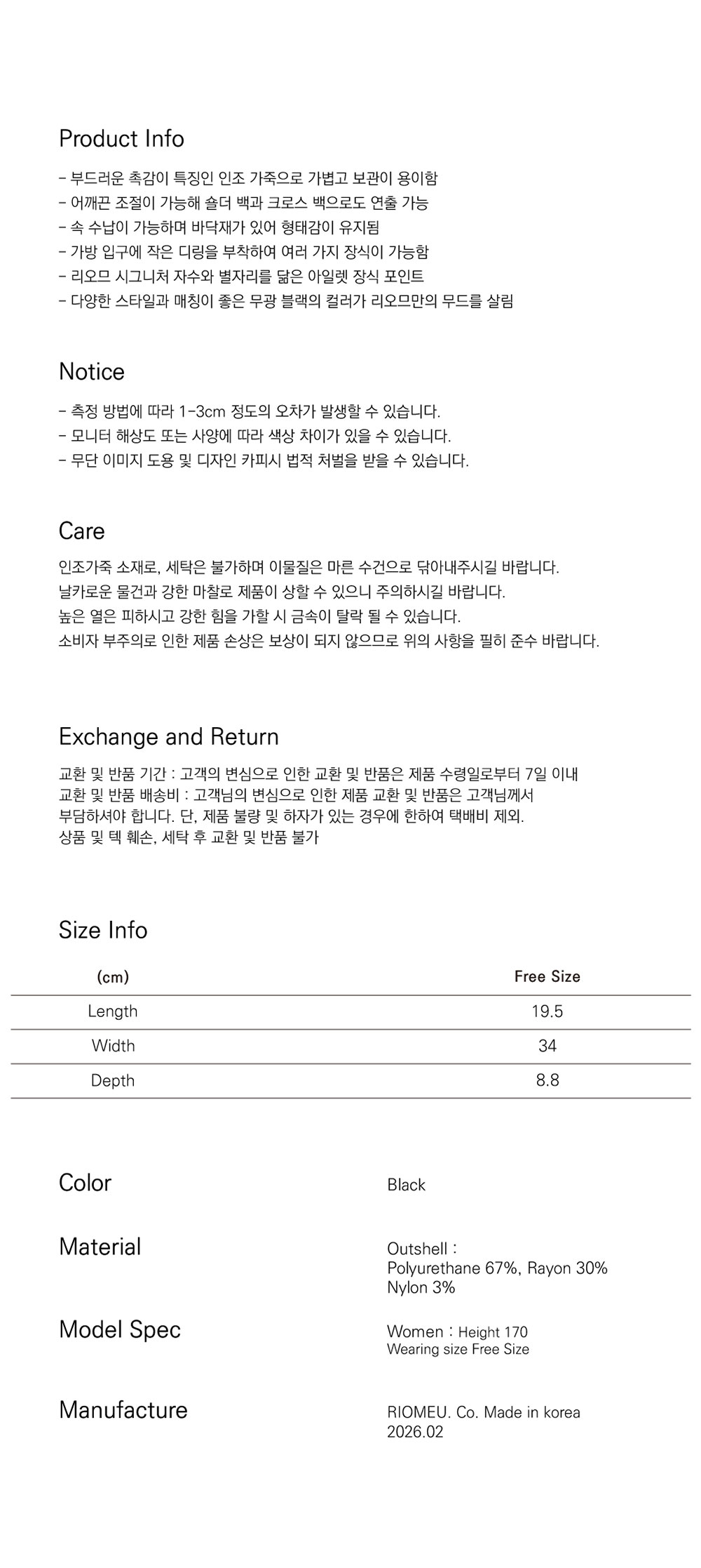 리오므 아일렛 숄더 백 블랙