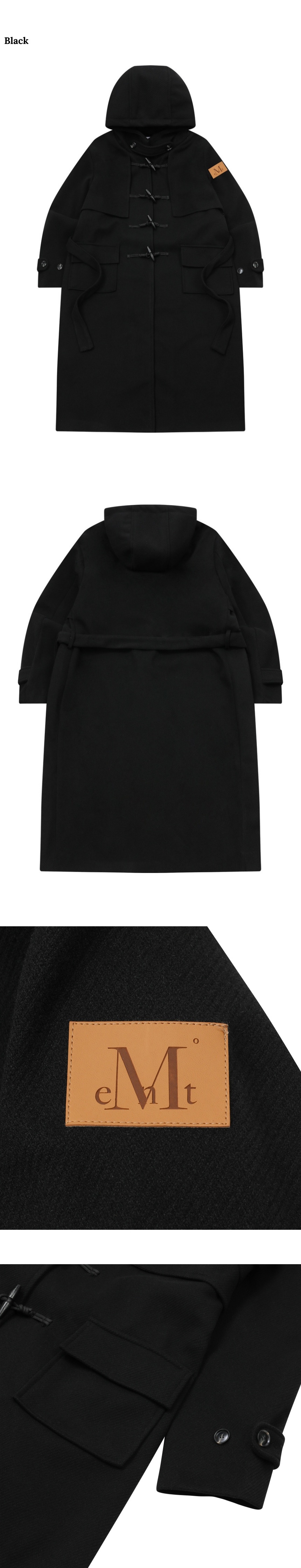 MUCENT [핀뱃지 증정] Harvitz Flap Hooded Duffel Long Coat Unisex (2Color) Black