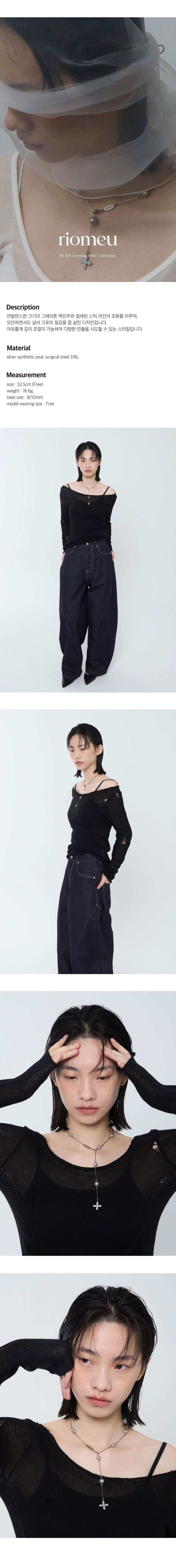 리오므 실버 핵진주 스틱 목걸이