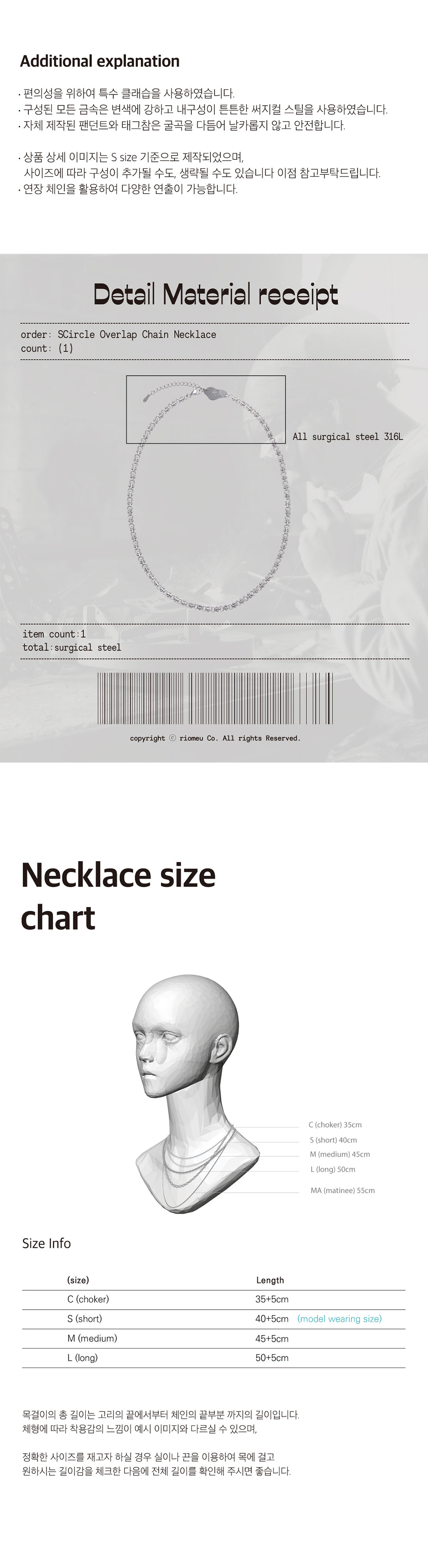 리오므 써클 오버랩 체인 목걸이
