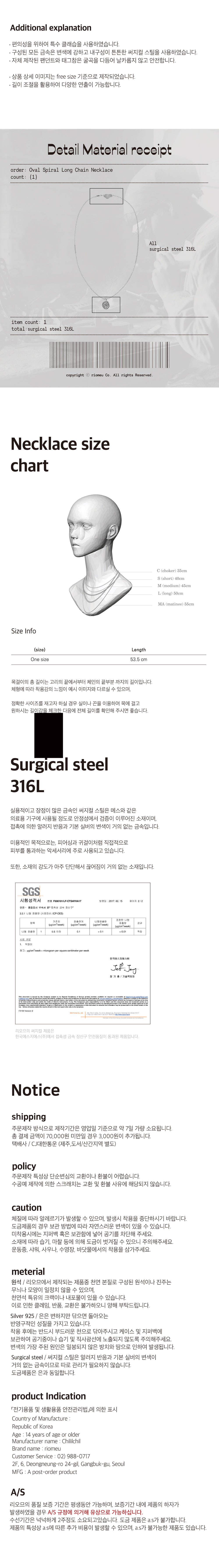 리오므 오벌 스파이럴 롱 체인 목걸이