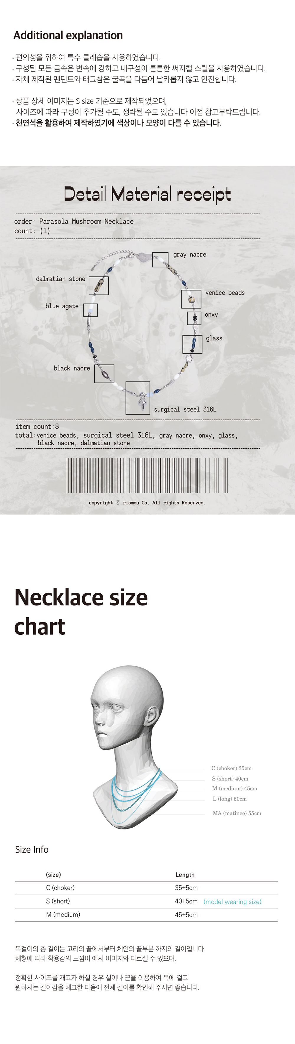 리오므 파라솔라 머쉬룸 목걸이