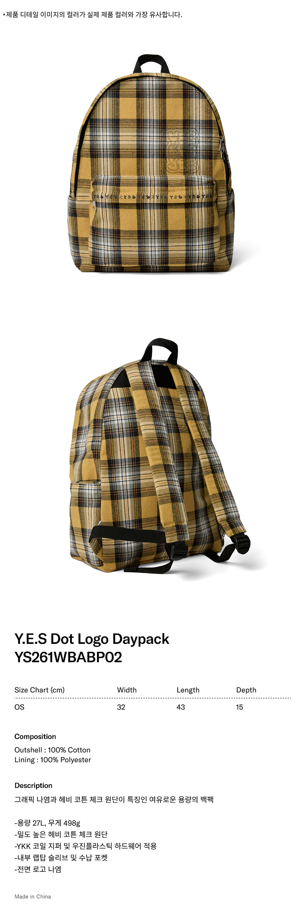 [더블적립] 예스아이씨 예스 도트 로고 데이팩 옐로우