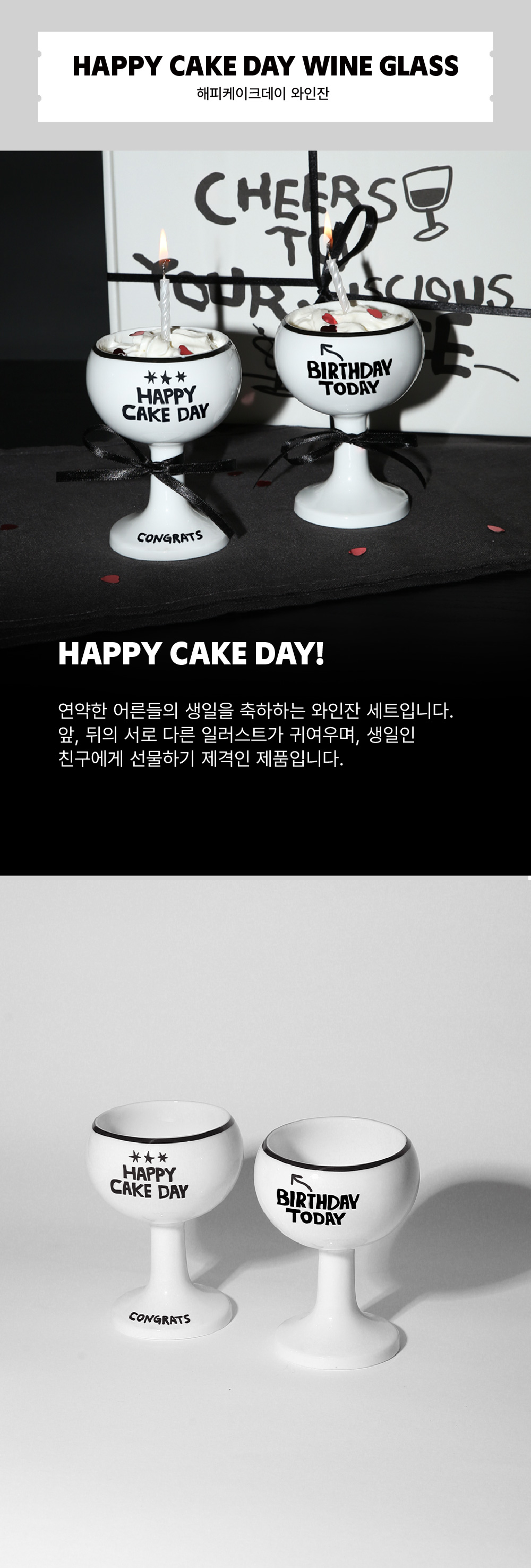 [3% 적립] 로파서울 FRAGILE ADULT CLUB HAPPY CAKE DAY 와인잔 2P 세트 기프트 세트