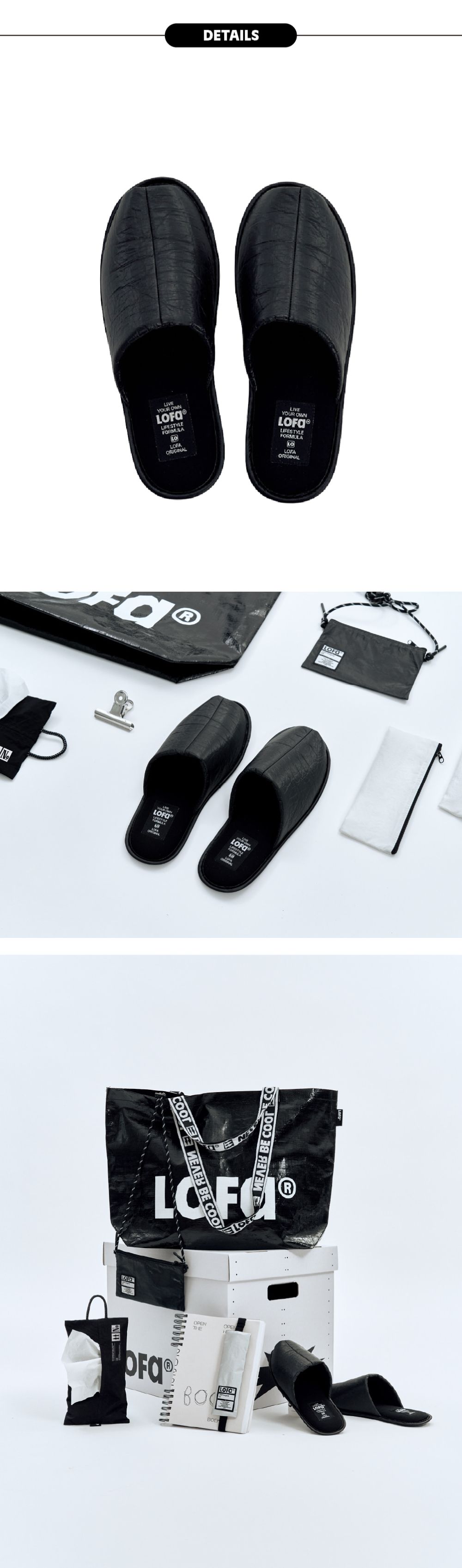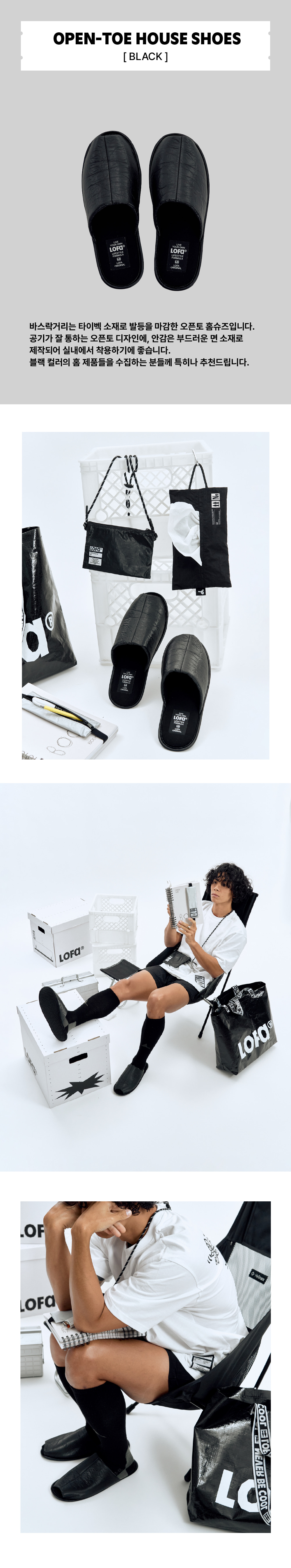 [3% 적립] LOFA SEOUL LOFA ORIGINAL Black Open-Toe Home Slippers (2 Sizes) Gift SET