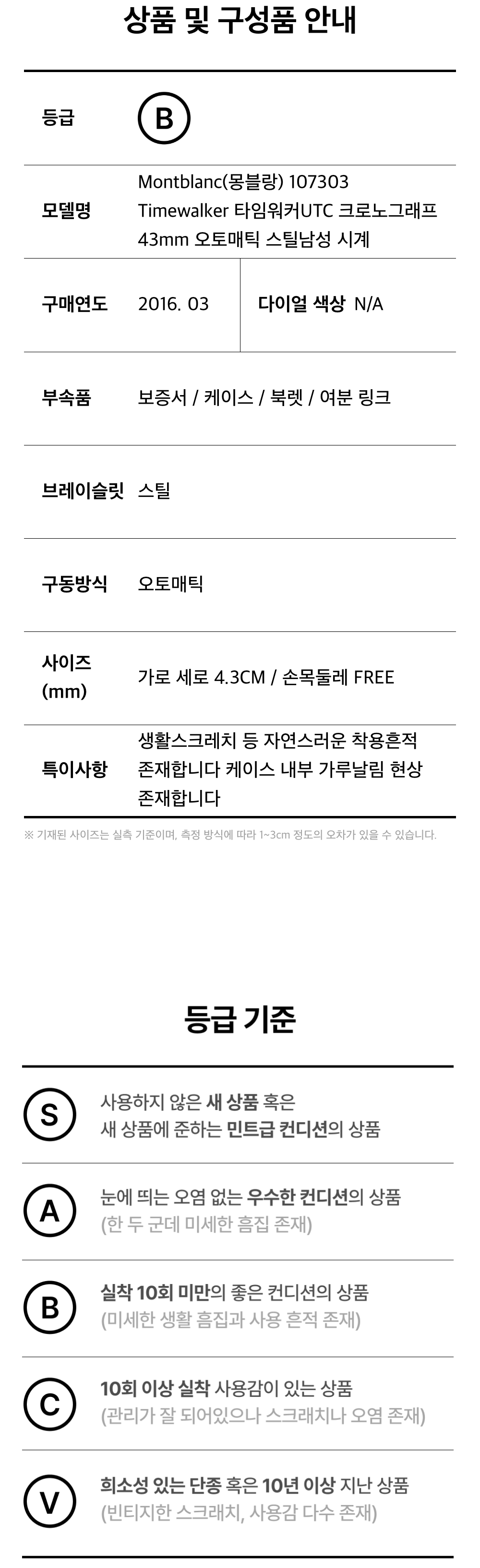 몽블랑 107303 타임워커UTC 크로노그래프 43mm 오토매틱 스틸남성 시계aa60422