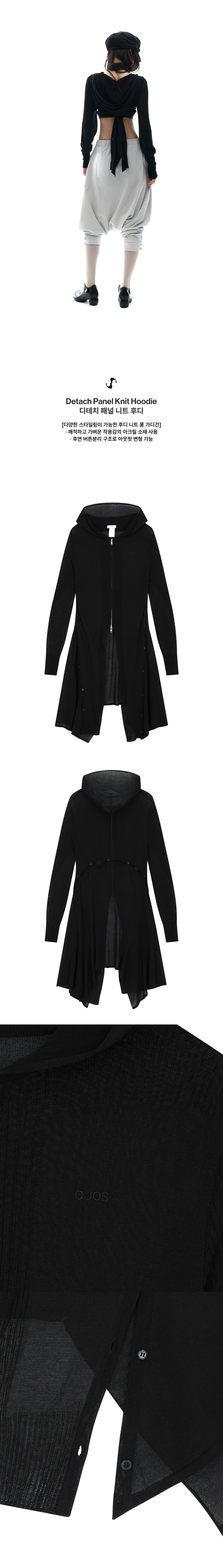 오호스 디테치 패널 니트 후디 블랙