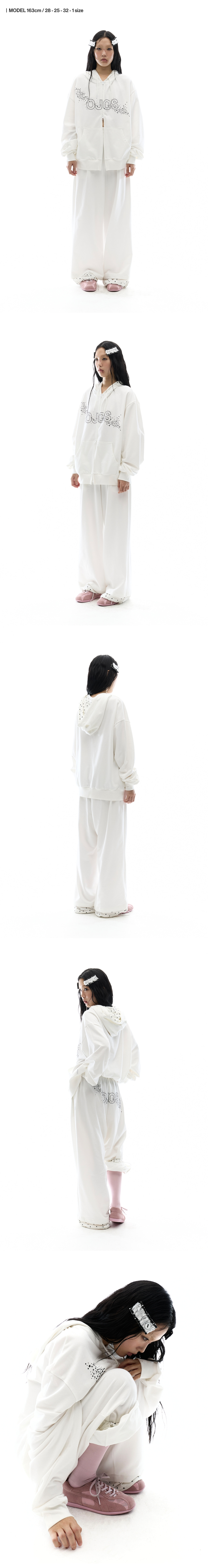 오호스 핫 픽스 로고 와이드 스웻팬츠 오프 화이트