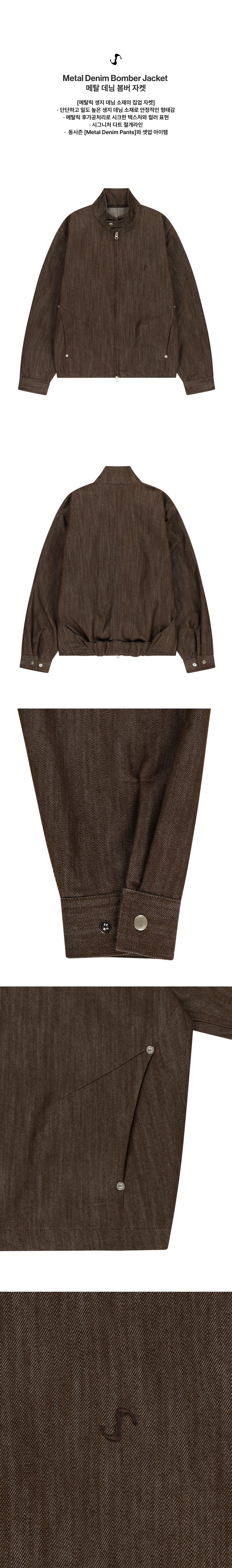 오호스 메탈 데님 봄버 자켓 브라운