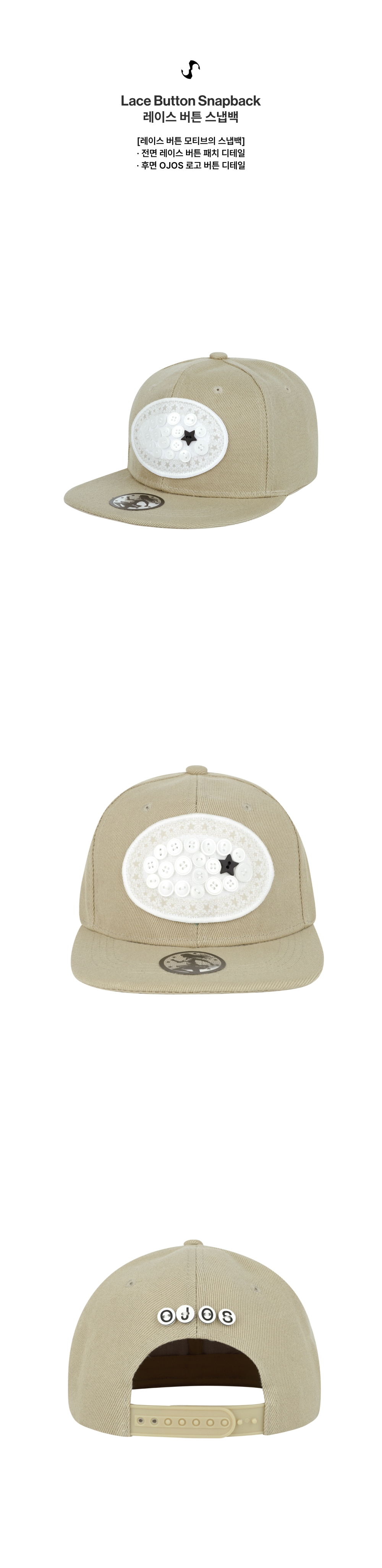 오호스 레이스 버튼 스냅백 베이지