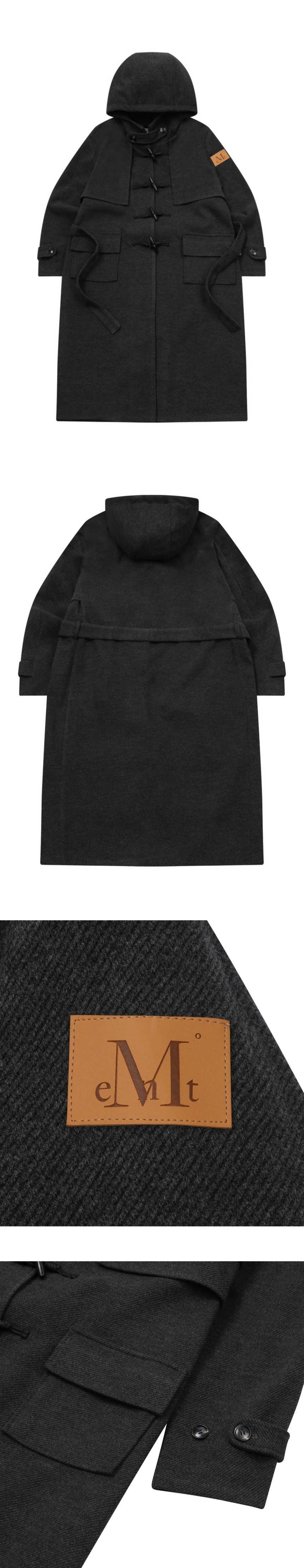 MUCENT [핀뱃지 증정] Harvitz Flap Hooded Duffel Long Coat Unisex (2Color) Charcoal