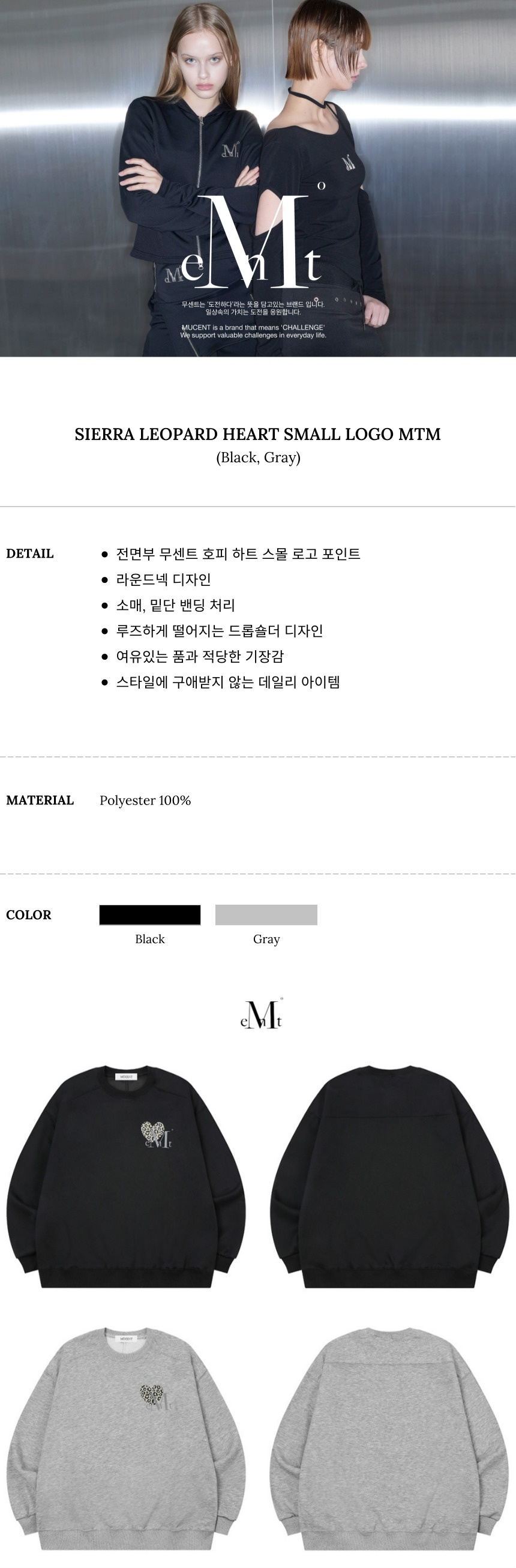 무센트 시에라 호피 하트 스몰 로고 맨투맨 남녀공용 (2컬러) 블랙 - 호피 브라운