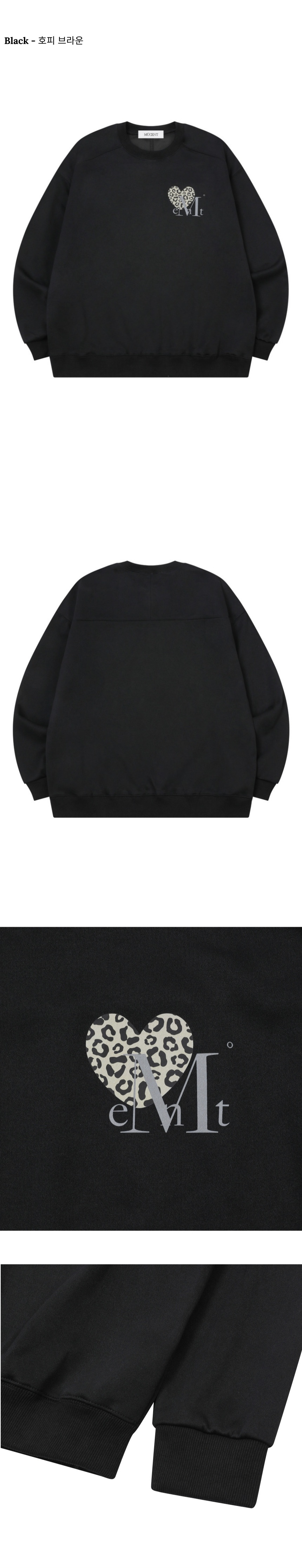 무센트 시에라 호피 하트 스몰 로고 맨투맨 남녀공용 (2컬러) 그레이 - 호피 브라운
