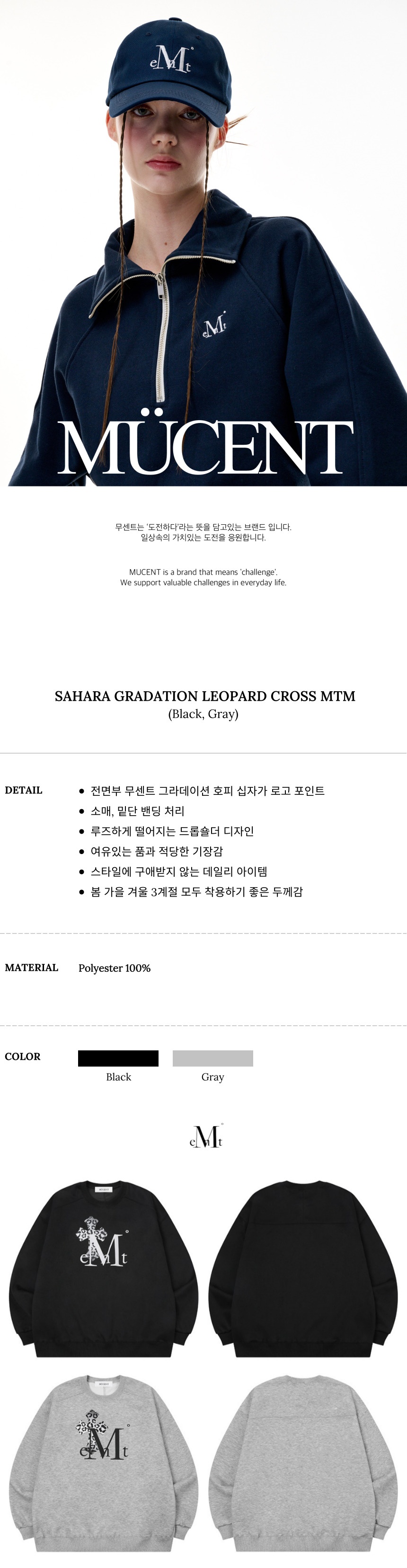 무센트 사하라 그라데이션 호피 십자가 맨투맨 남녀공용 (2컬러) 그레이 - 호피 그레이