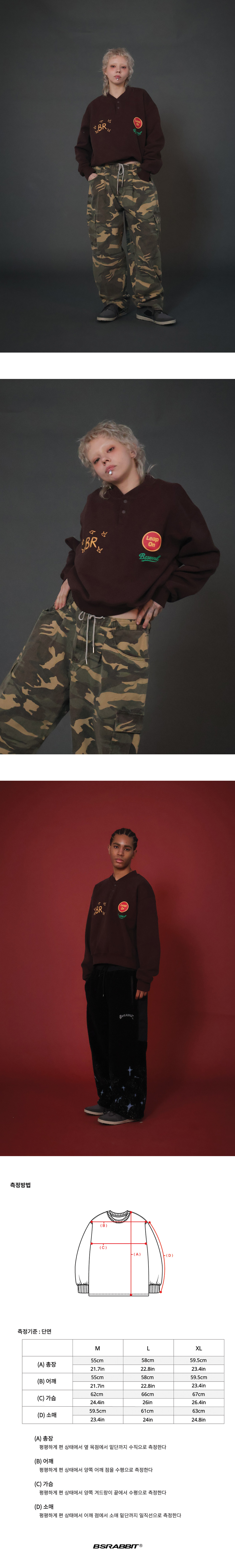비에스래빗 비알 스냅 헨리넥 스웻셔츠 브라운