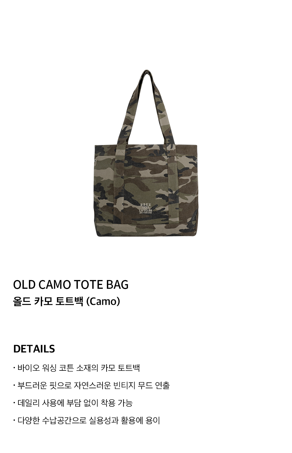 에이치덱스 올드 카모 토트백 카모
