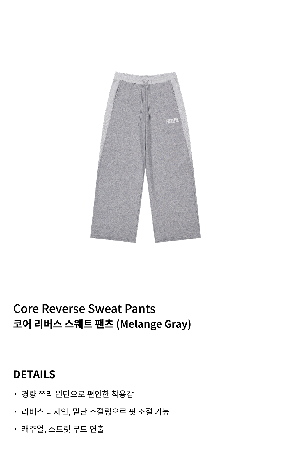 에이치덱스 코어 리버스 스웨트 팬츠 멜란지 그레이