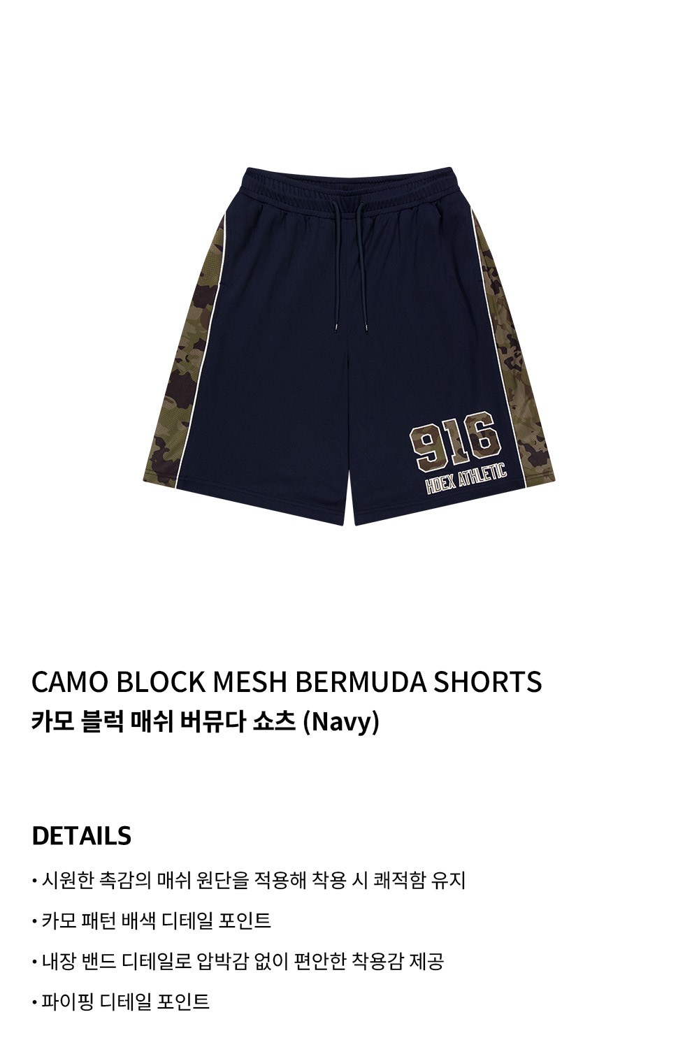 에이치덱스 카모 블럭 매쉬 버뮤다 쇼츠 네이비