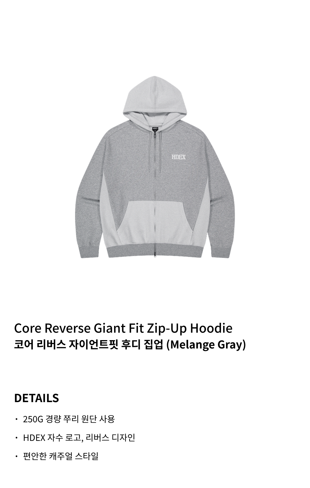 에이치덱스 코어 리버스 자이언트핏 후디 집업 멜란지 그레이