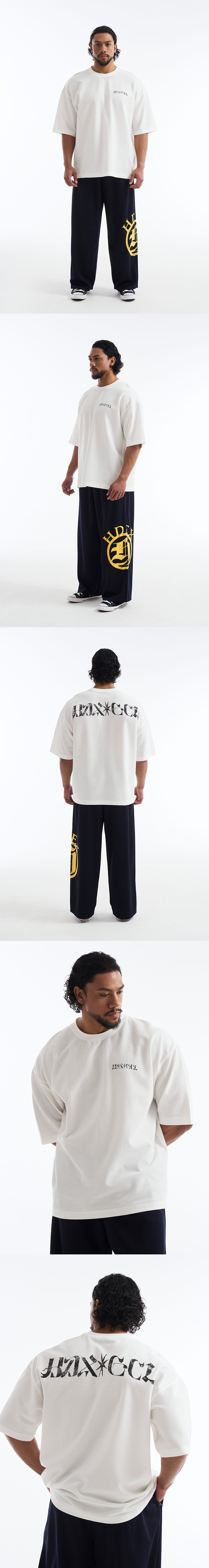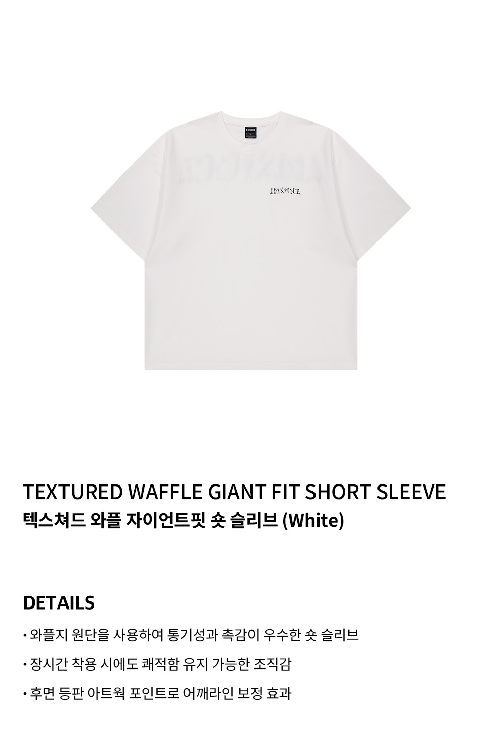에이치덱스 텍스쳐드 와플 자이언트핏 숏 슬리브 화이트