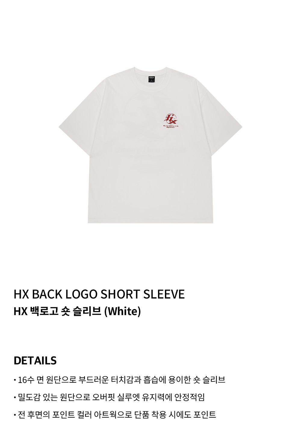 에이치덱스 HX 백로고 숏 슬리브 화이트