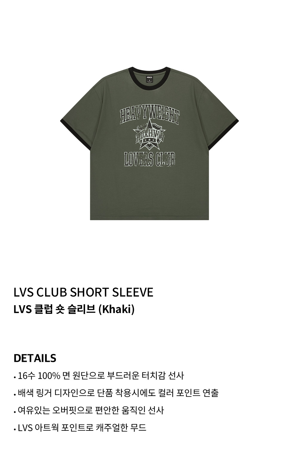 에이치덱스 LVS 클럽 숏 슬리브 카키