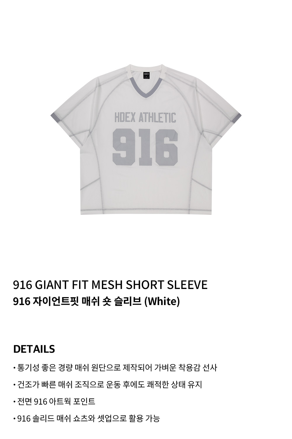 에이치덱스 916 자이언트핏 매쉬 숏 슬리브 화이트