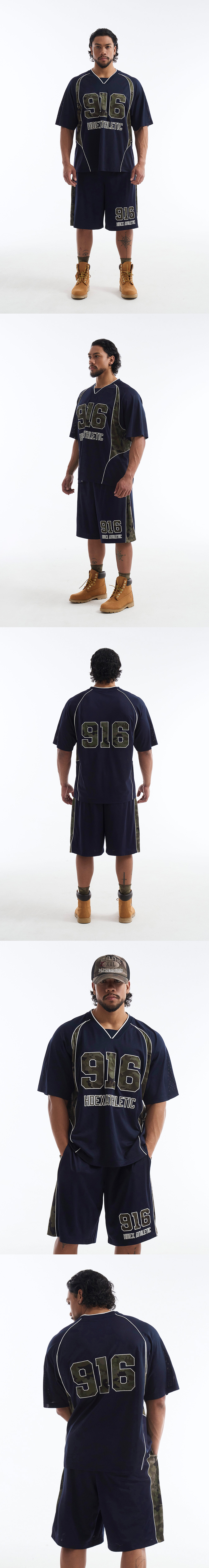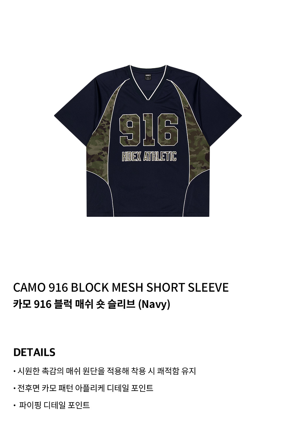 에이치덱스 카모 916 블럭 매쉬 숏 슬리브 네이비
