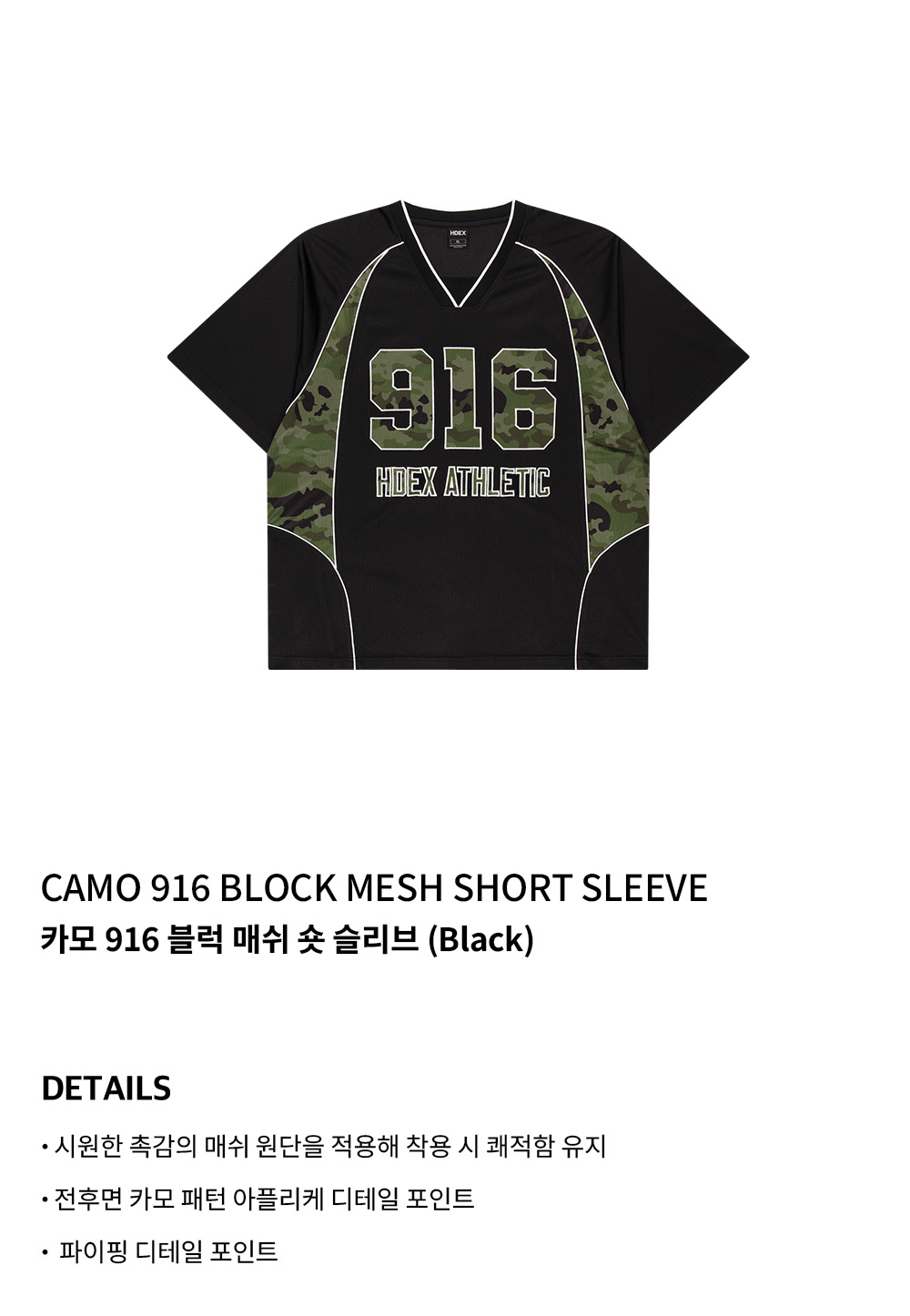 에이치덱스 카모 916 블럭 매쉬 숏 슬리브 블랙