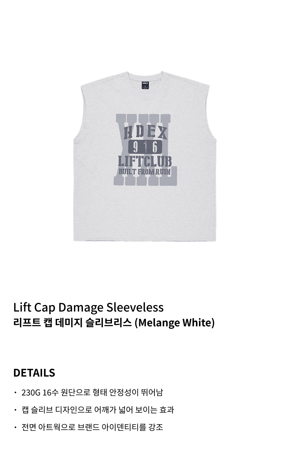 에이치덱스 리프트 캡 데미지 슬리브리스 멜란지 화이트