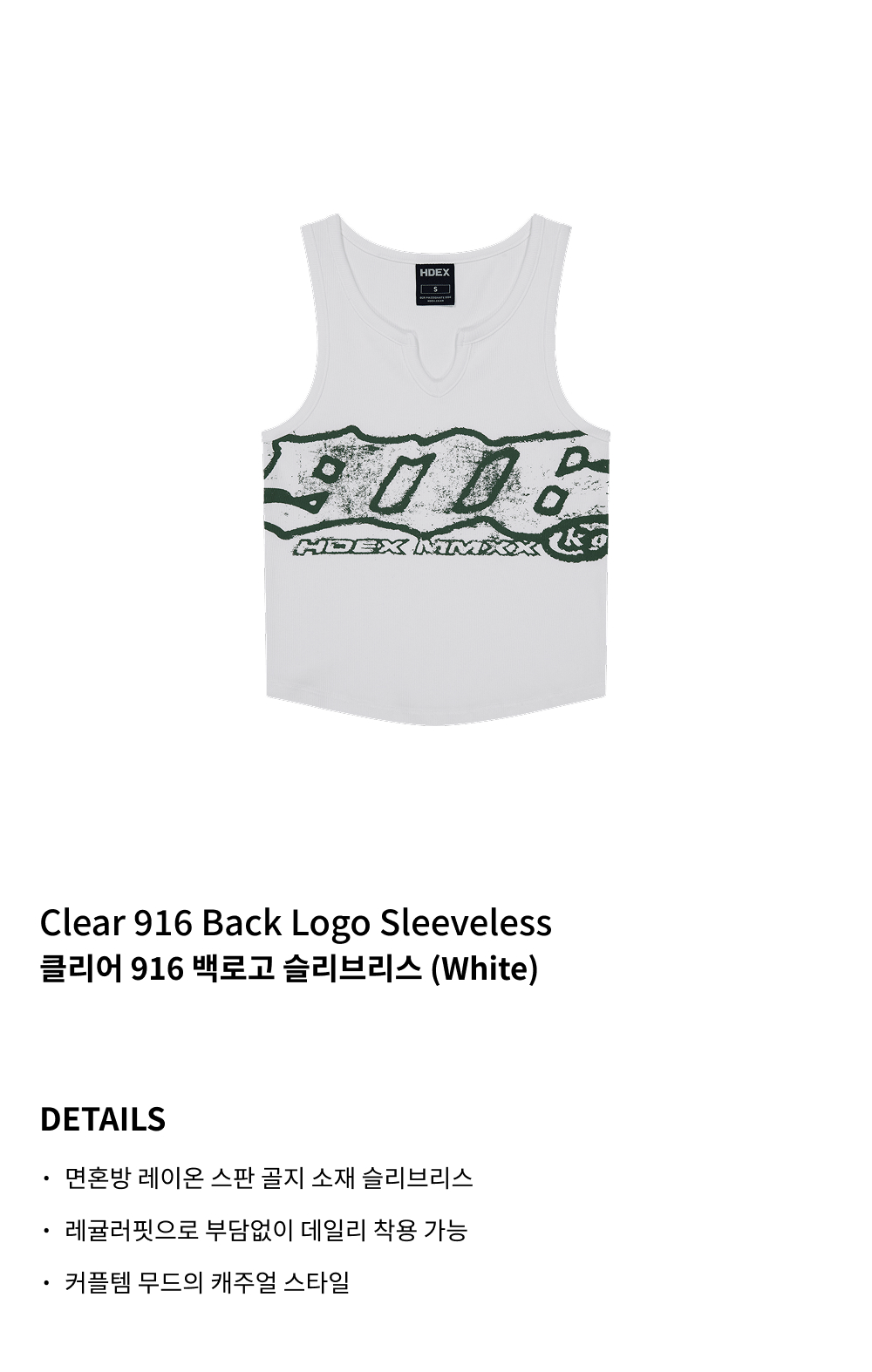 에이치덱스 클리어 916 백로고 슬리브리스 화이트