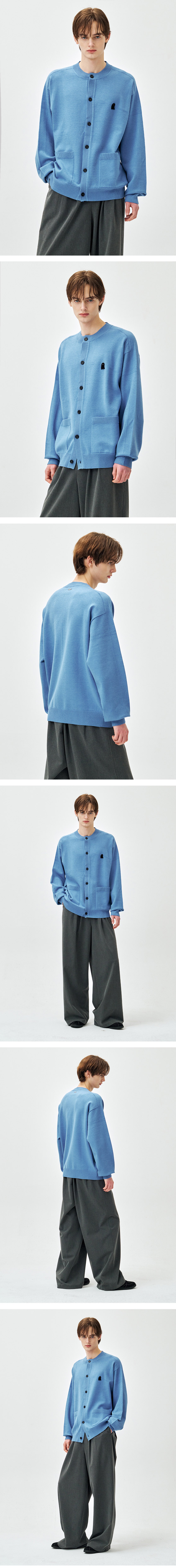 ZIOSONGZIO SEMBLANCE Wholegarment Collarless Cardigan Blue