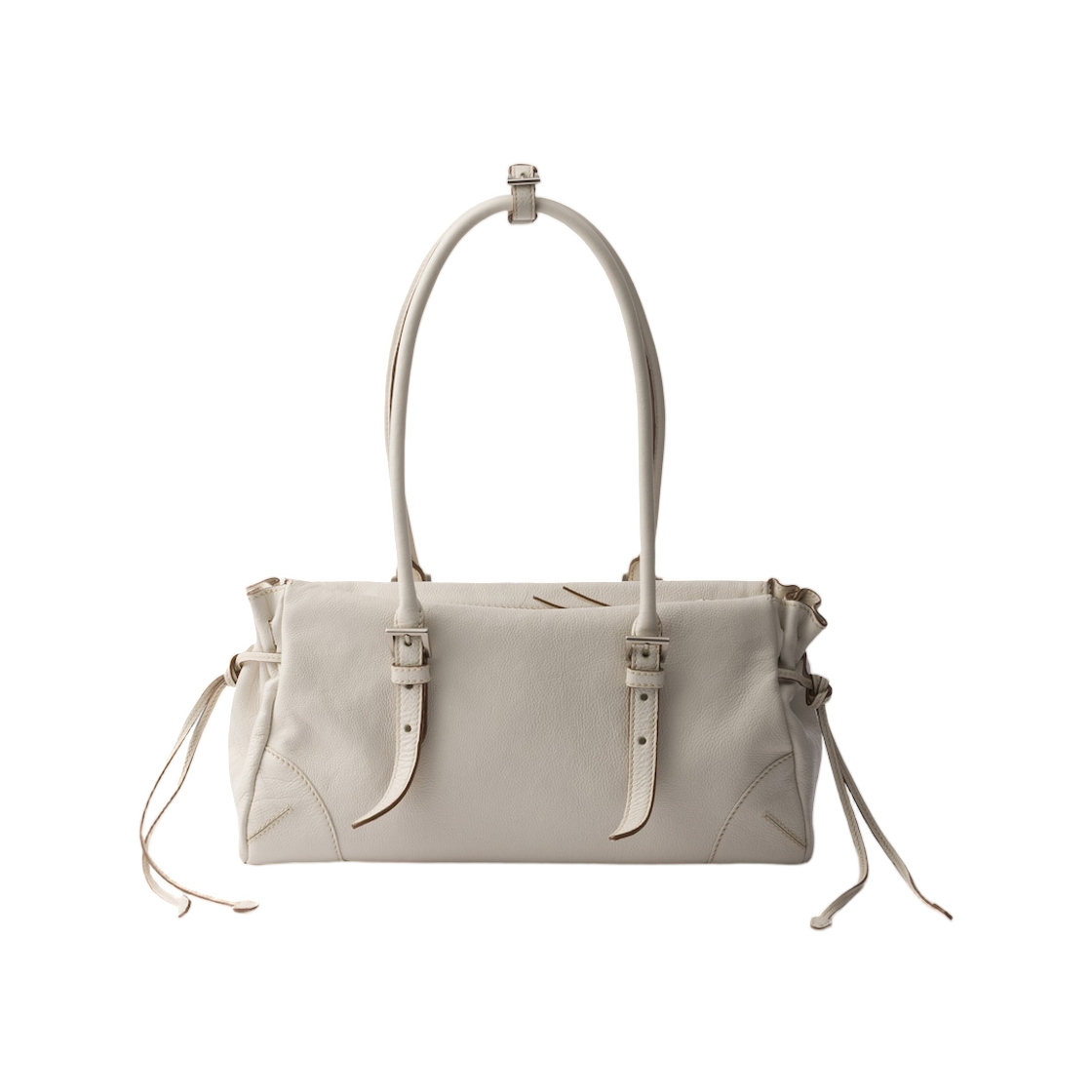 프라다 보니 미디움 앤틱 레더 토트백 초크 화이트