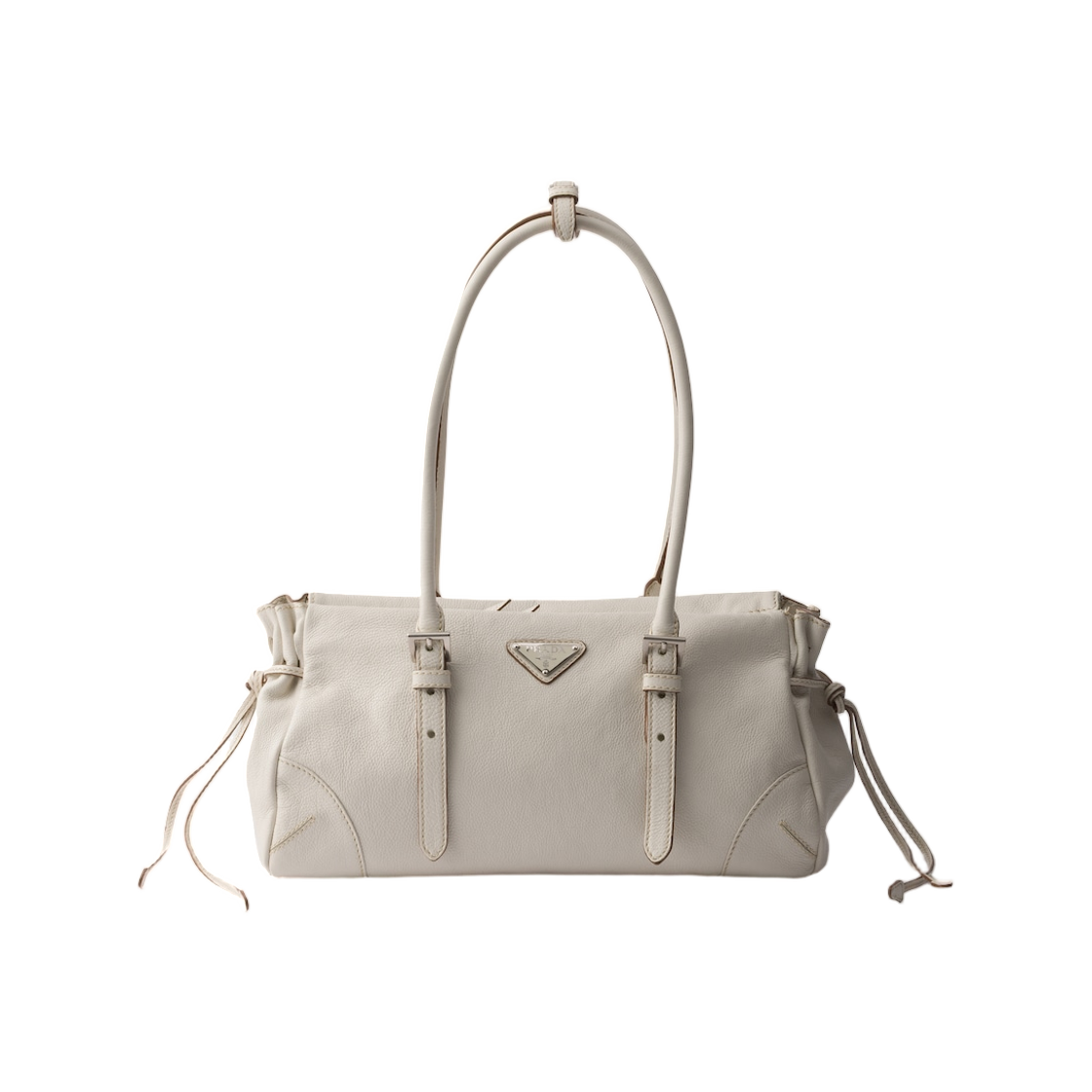 Prada Bonnie Medium Antiqued Leather Tote Bag Chalk White