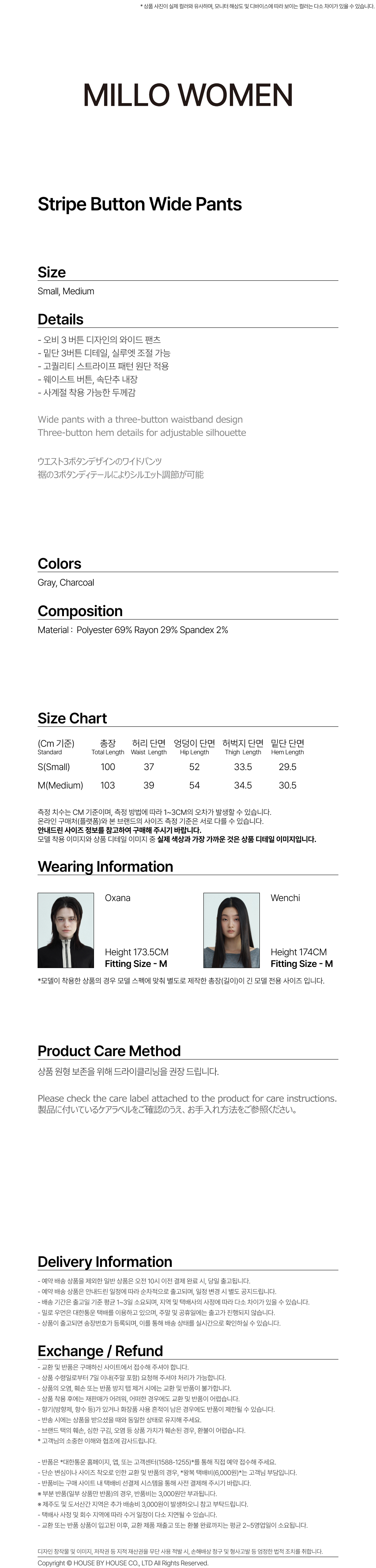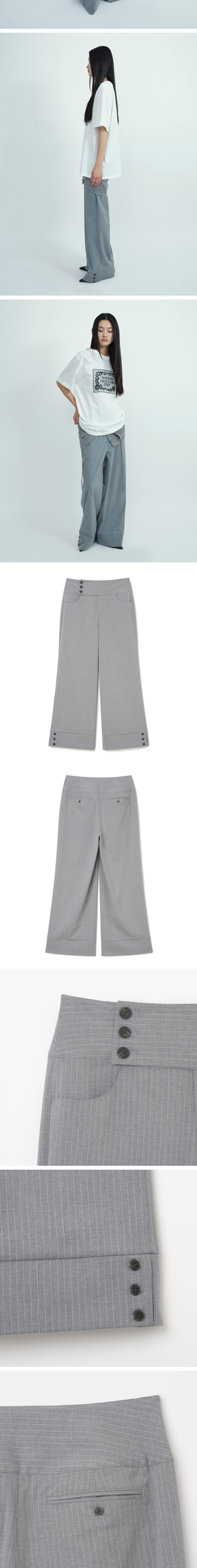 밀로 우먼 스트라이프 버튼 와이드 팬츠 그레이
