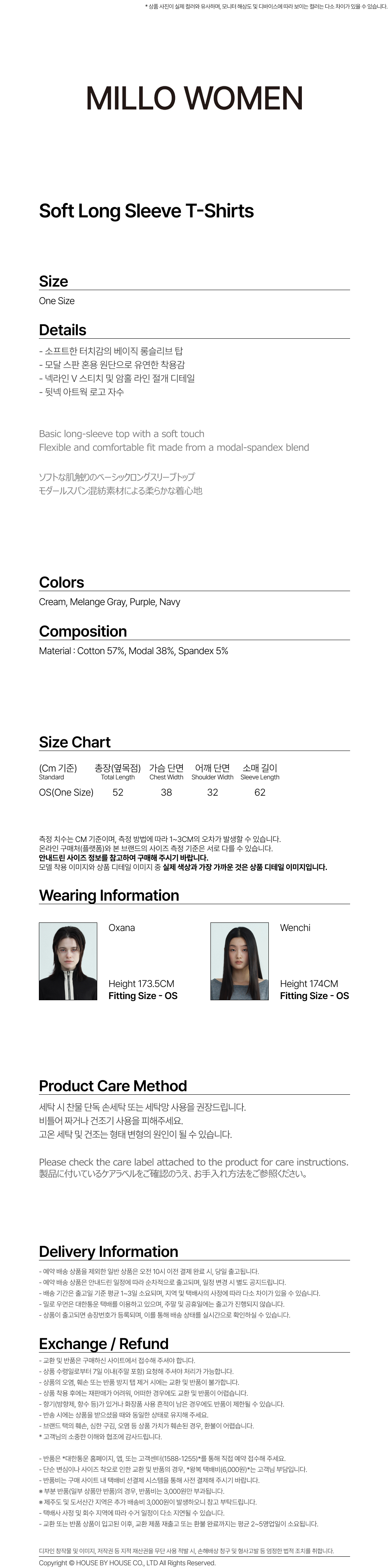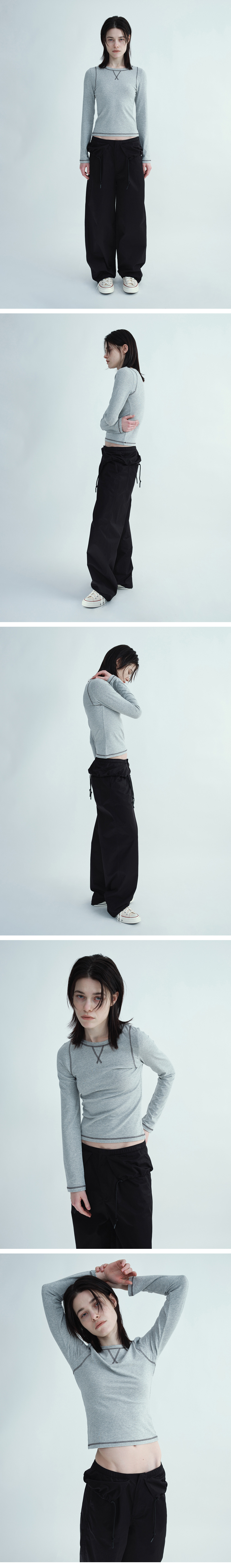 밀로 우먼 소프트 롱슬리브 티셔츠 멜란지 그레이