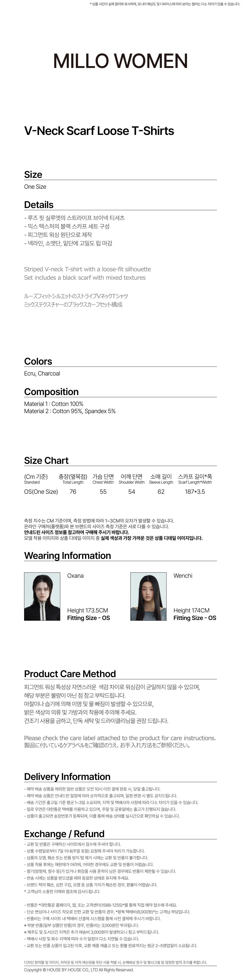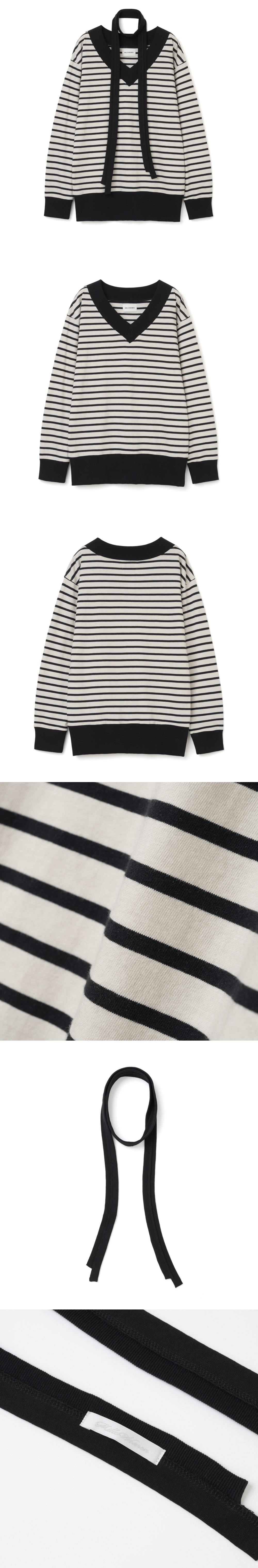 밀로 우먼 브이넥 스카프 루즈 티셔츠 에크루