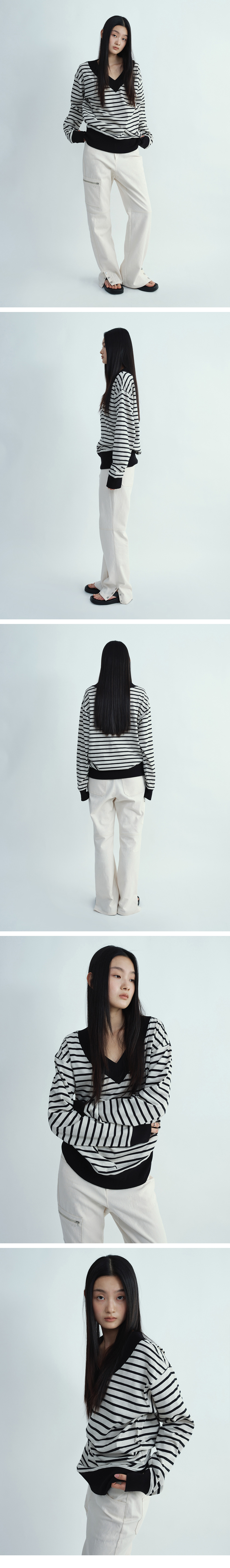 MILLO WOMEN V-Neck Scarf Loose T-Shirt Ecru