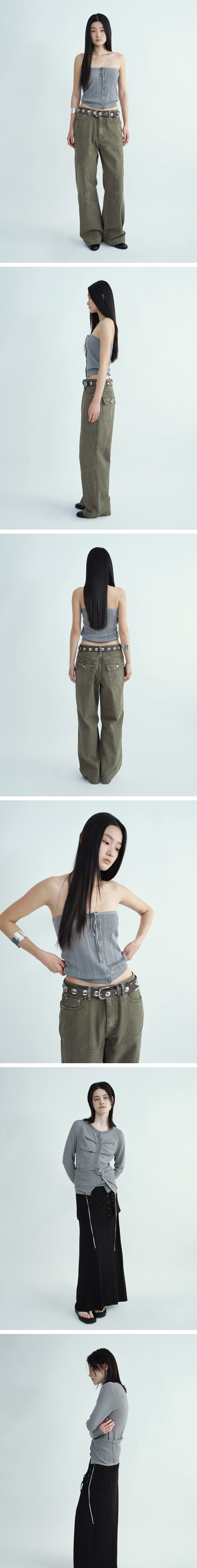 밀로 우먼 리브드 레이어드 니트 탑 멜란지 그레이