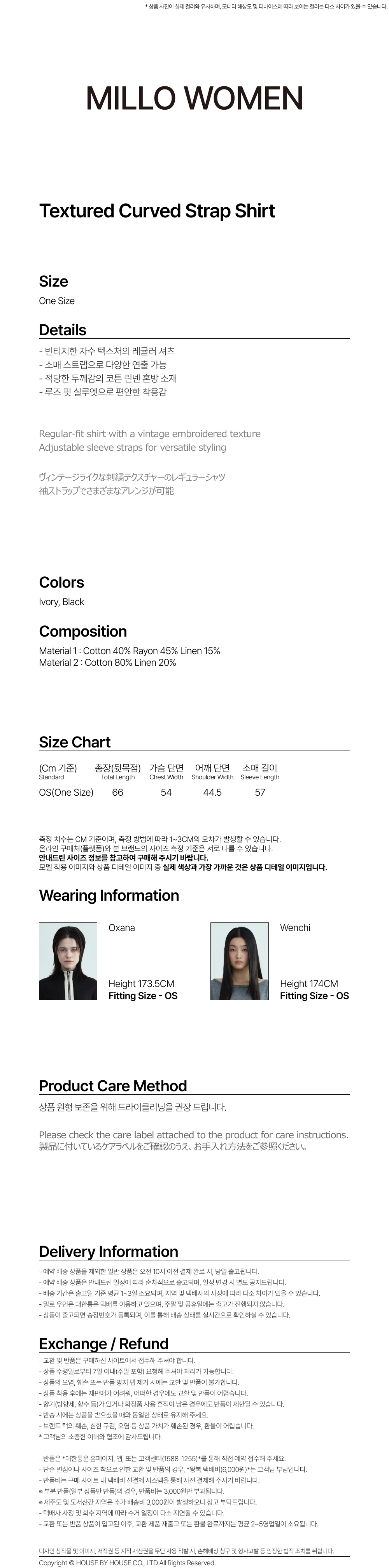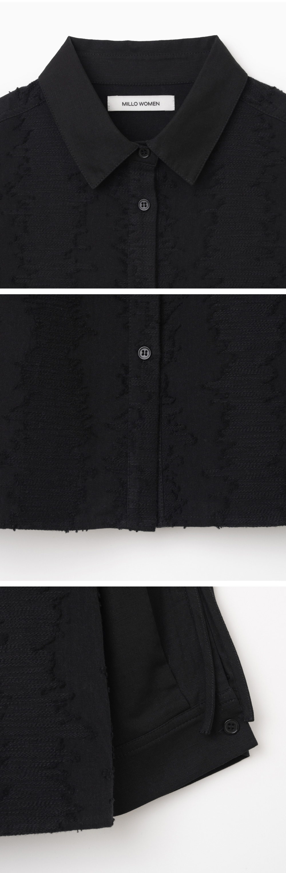 밀로 우먼 텍스처 커브 스트랩 셔츠 블랙
