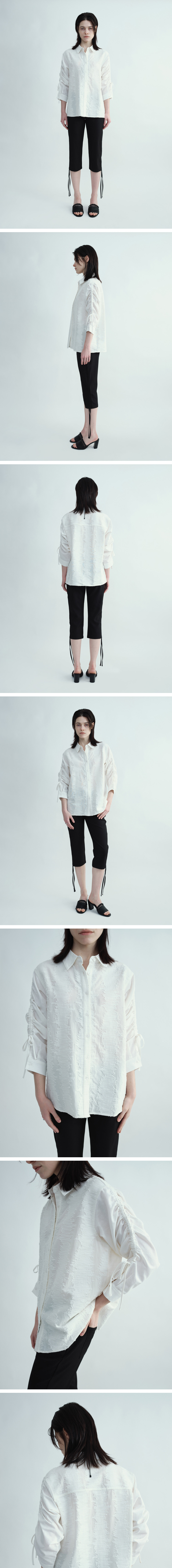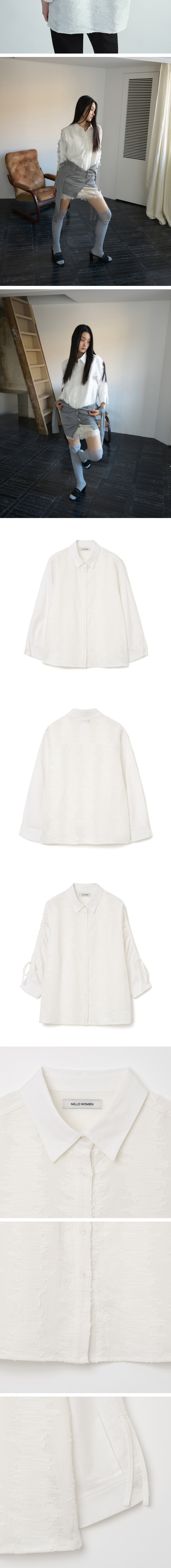 밀로 우먼 텍스처 커브 스트랩 셔츠 아이보리