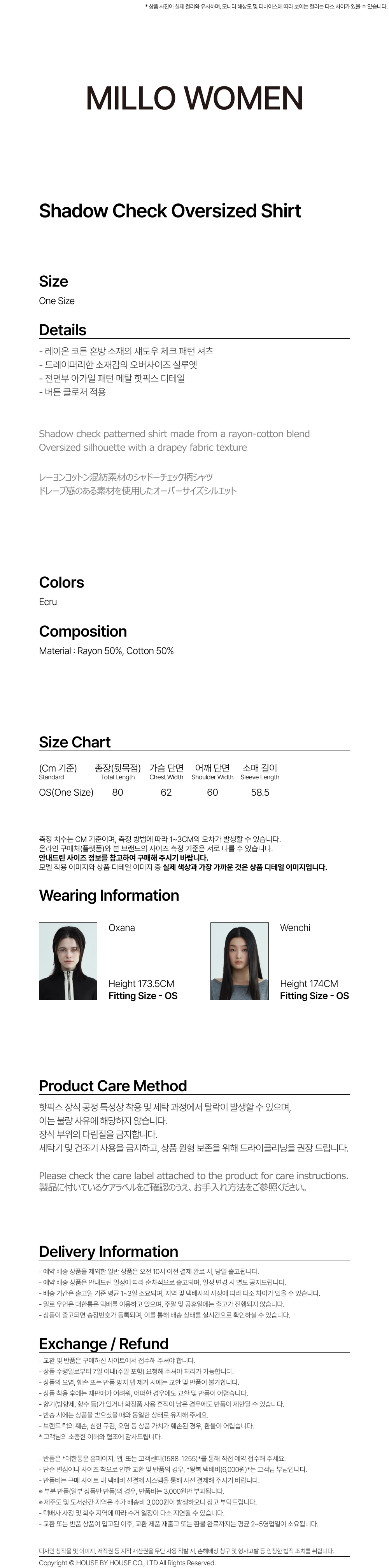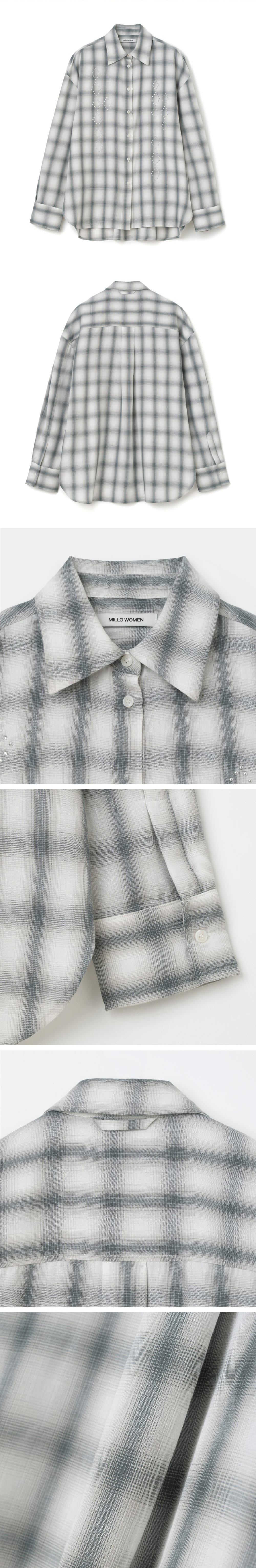 밀로 우먼 섀도우 체크 오버사이즈 셔츠 에크루